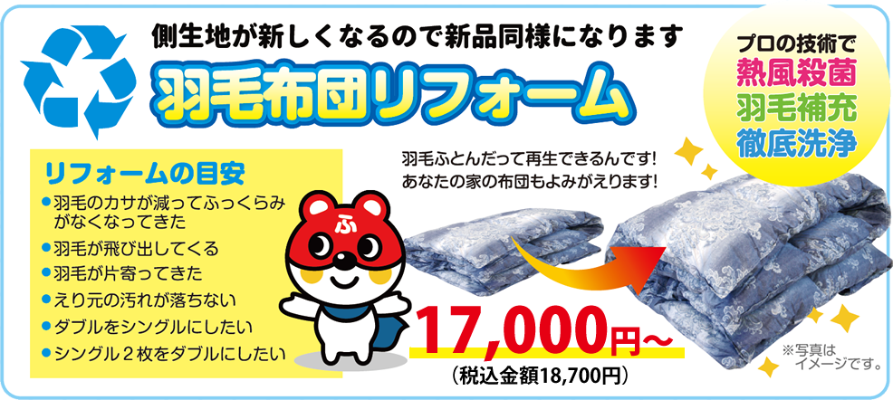 当社は、ふとん丸洗いの専門店でもあります。ただ、リフォームするだけではありません!